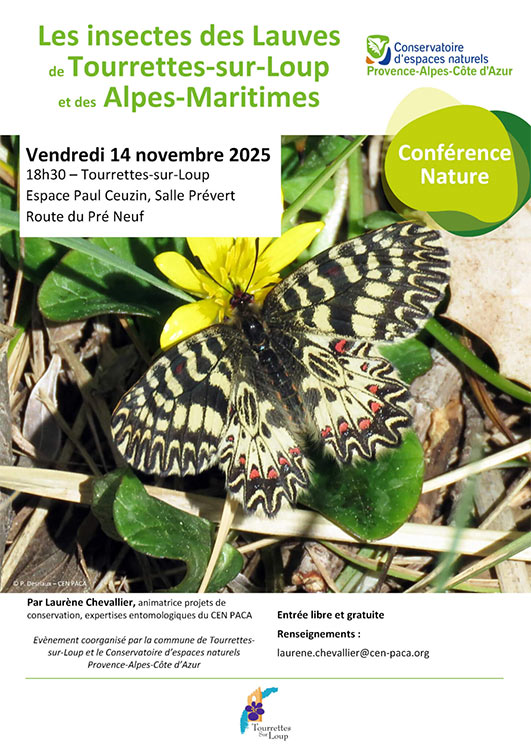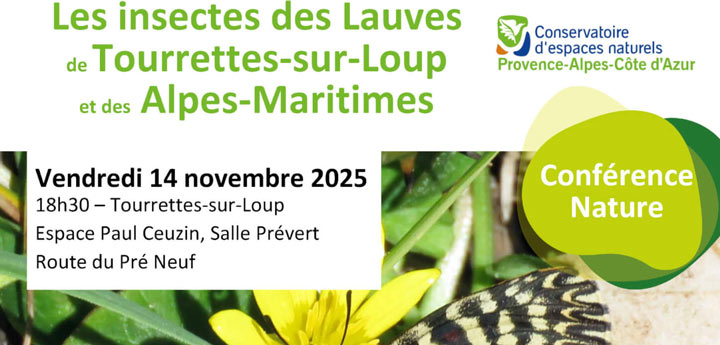 Ajouter à mon calendrierLa commune de Tourrettes-sur-Loup et le Conservatoire d’espaces naturels Provence-Alpes-Côte d’Azur vous invitent à une conférence sur les insectes qui peuplent les Lauves de Tourrettes-sur-Loup, et plus largement les Alpes-Maritimes.